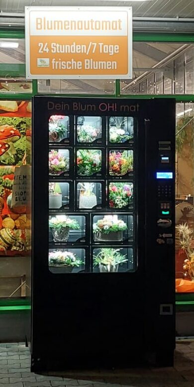 Bei unserem Blumomath können Sie 24/7 einkaufen frische Blumensträusse & Geschenksideen für jeden Anlass. Sie finden ihn direkt beim Ausgang